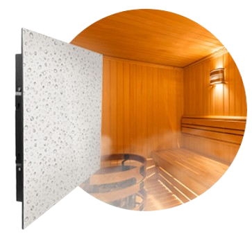 Modele posiadają zabezpieczoną konstrukcję, hartowany panel przedni, odporność na wilgoć oraz możliwość pracy w podwyższonych temperaturach. Dzięki temu telewizor można harmonijnie wkomponować we wnętrze sauny, łaźni, łazienki lub strefy SPA, zachowując estetykę przestrzeni.